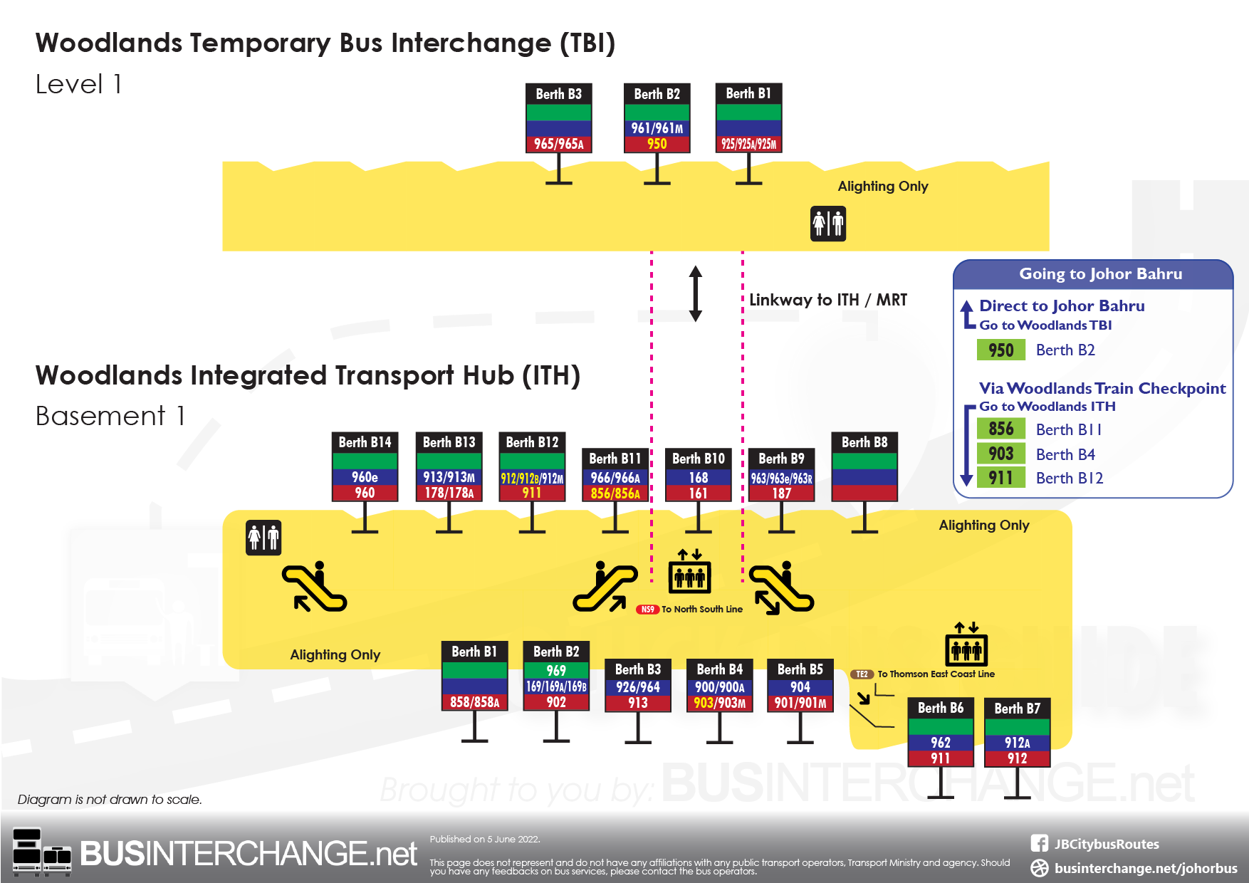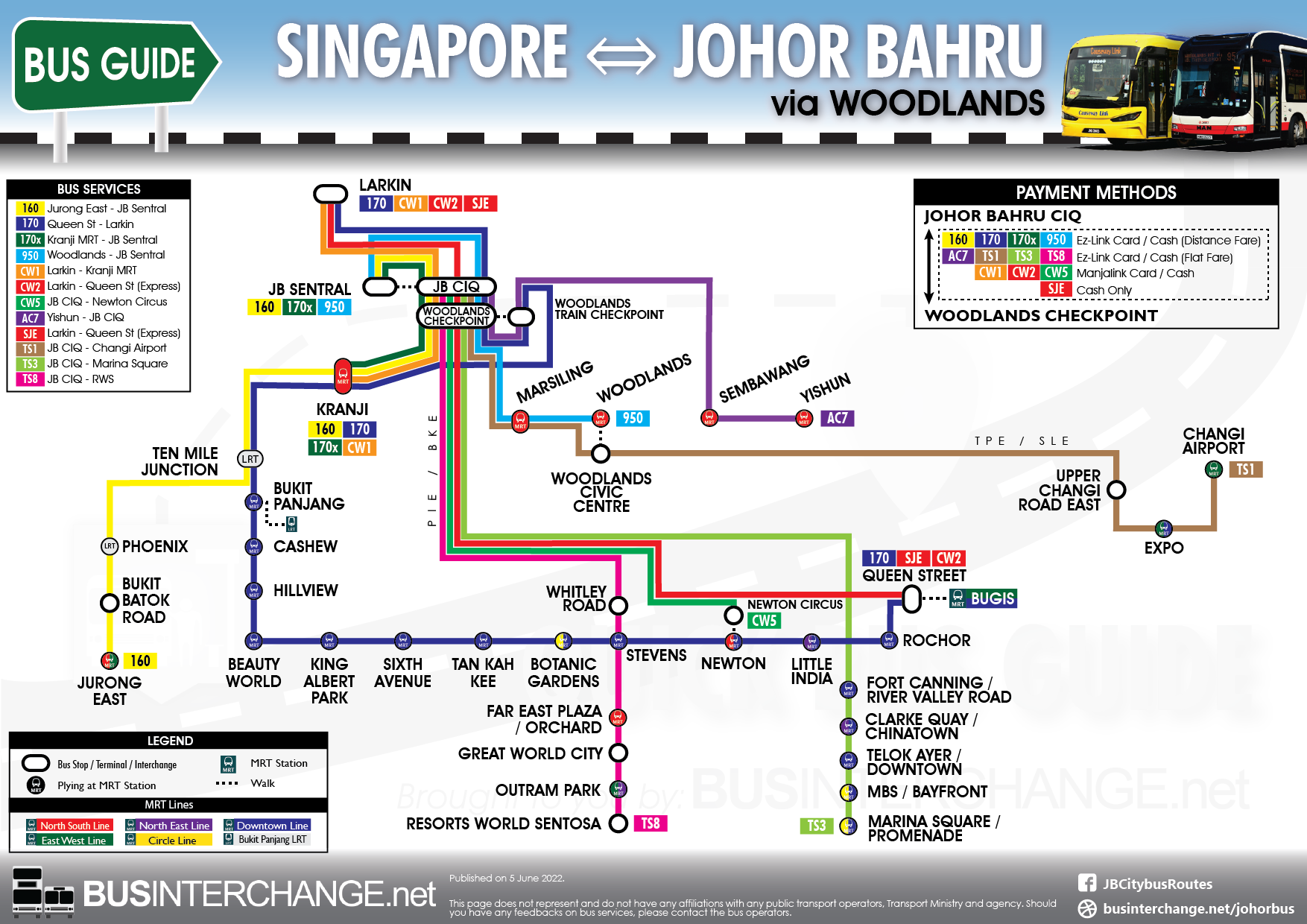 Easy Diagram for bus services between Woodlands Interchange and Woodlands Checkpoint. (Updated on 5 June 2022) |